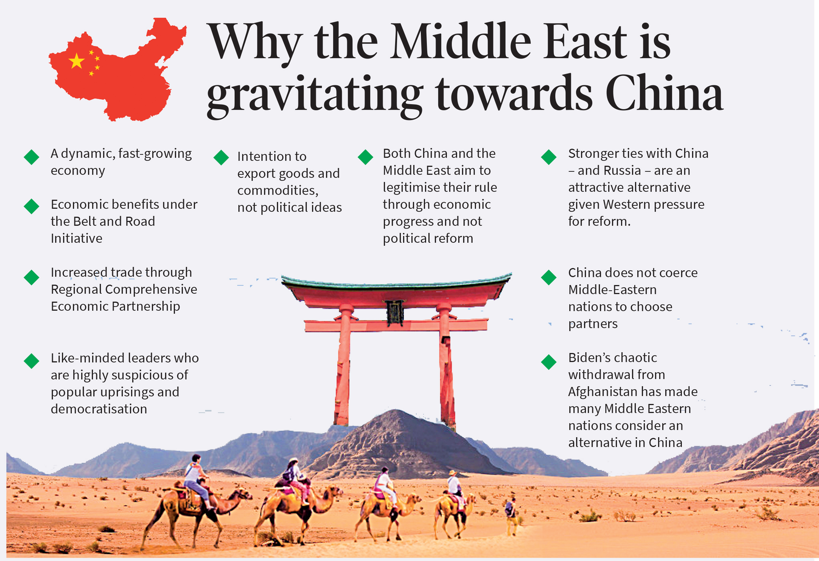 Why the Middle East is gravitating towards China TBS Report 15 July, 2023, 02:25 pm Last modified: 15 July, 2023, 03:40 pm Download/Print Keep updated, follow The Business Standard's Google news channel Scramble for the middle east / Middle East-China / Middle East crisis / Middle East / geopolitics / Geopolitical Value / geopolitical game