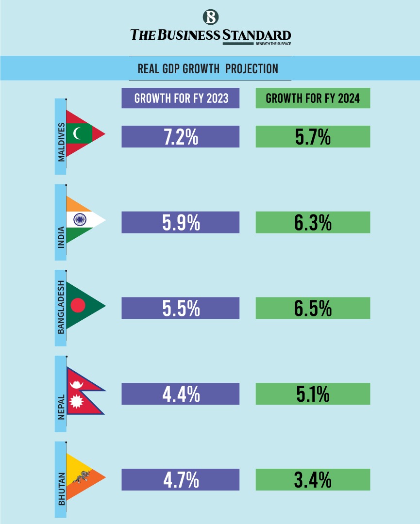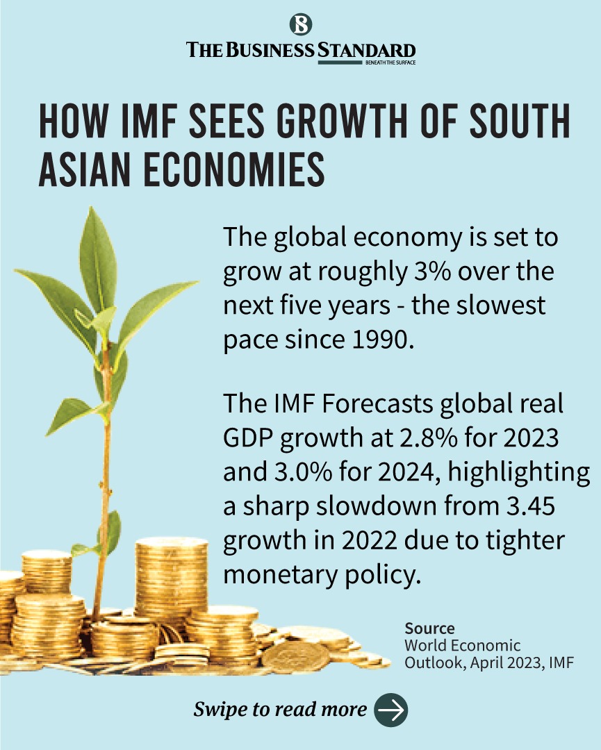 How IMF sees growth of South Asian economies TBS Report 13 April, 2023, 01:45 pm Last modified: 13 April, 2023, 01:52 pm Download/Print Download/Print Infograph: TBS Keep updated, follow The Business Standard's Google news channel IMF / South Asia / Economy
