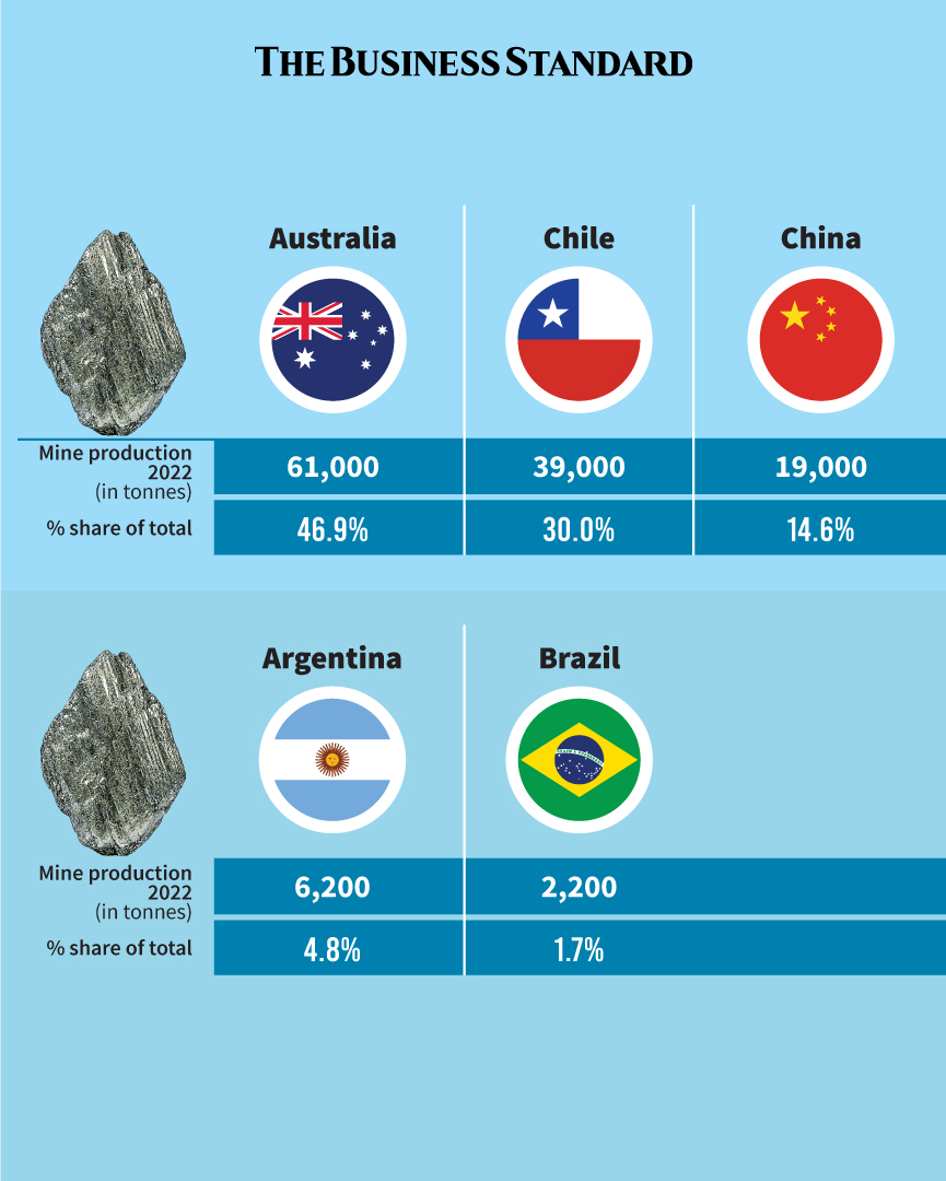 World's largest lithium producing countries TBS Report 15 June, 2023, 01:40 pm Last modified: 15 June, 2023, 01:44 pm Download/Print Download/Print Infograph: TBS Keep updated, follow The Business Standard's Google news channel lithium / production