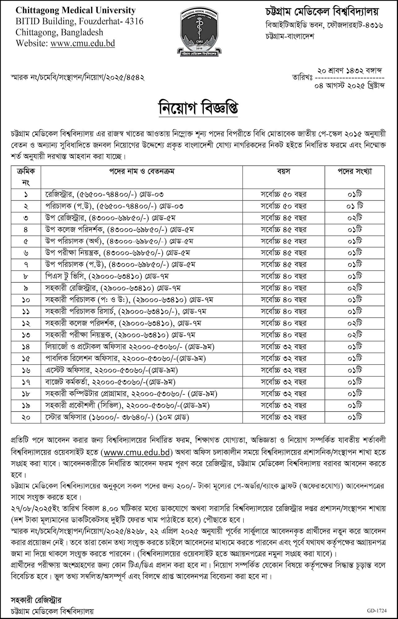 Registrar | Chittagong Medical University Job TypeFull Time Job LocationChittagong Deadline27 August, 2025 Download/Print