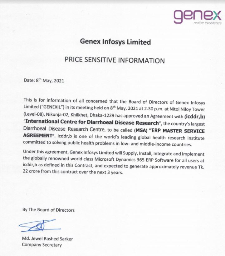 Genex: Price Sensitive Information 08 May, 2021, 03:30 pm Last modified: 08 May, 2021, 03:35 pm Download/Print Genex