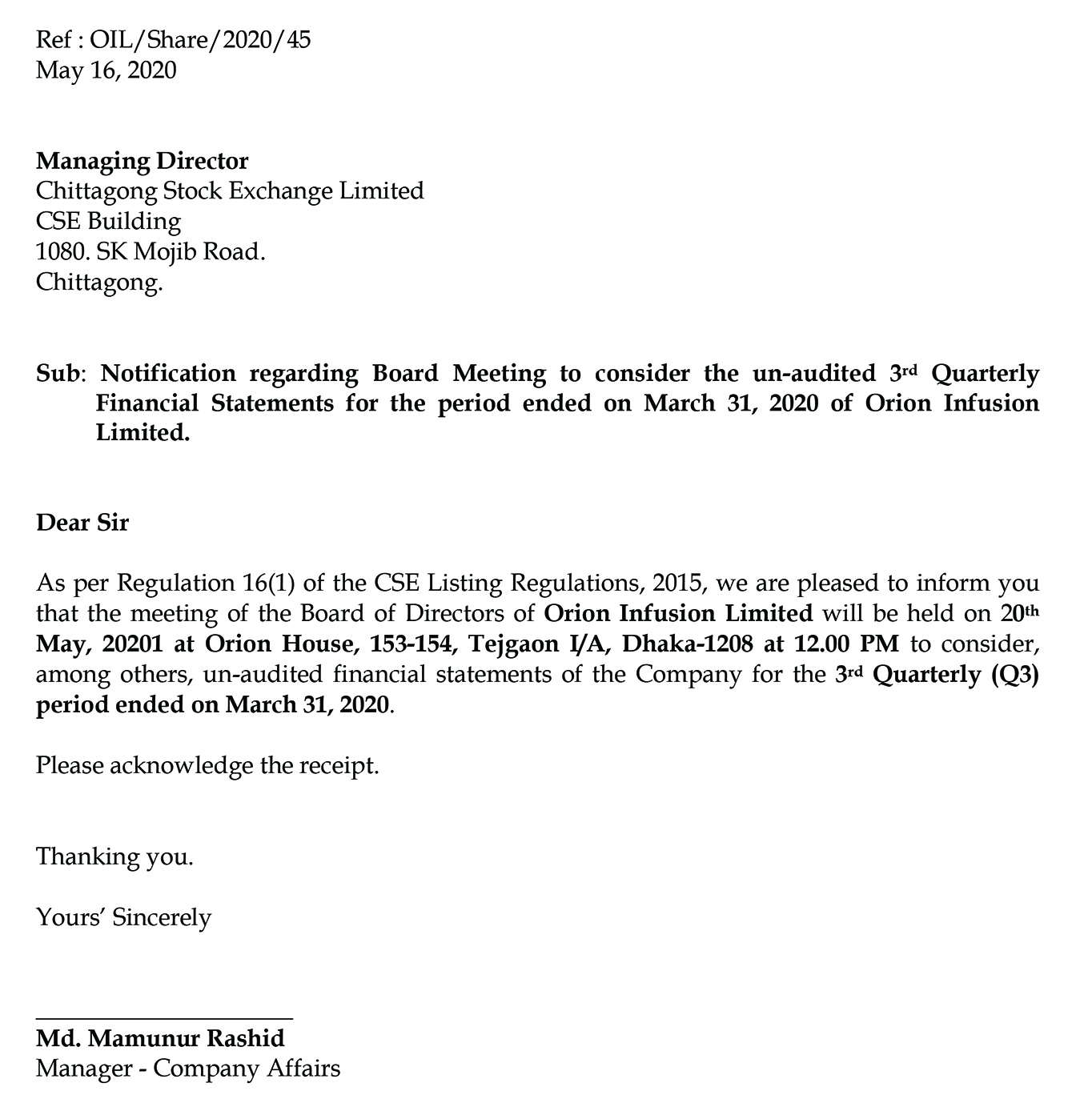 Orion Infusion: Un-Audited Third Quarterly (Q3) Financial Statements - CSE