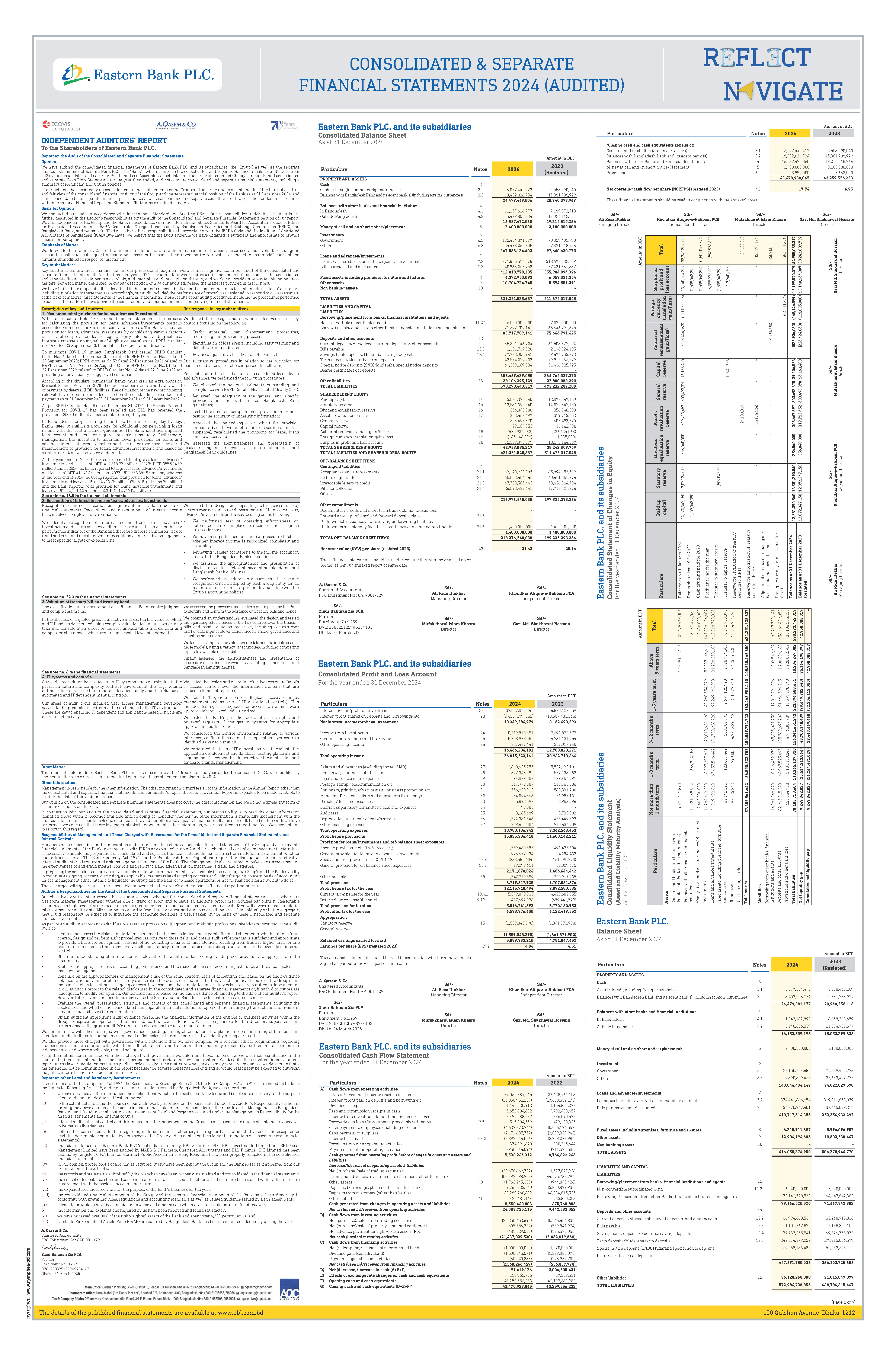 Consolidated & Separate Financial Statements 2024 (Audited) | Eastern Bank PLC 04 May, 2025, 07:45 pm Last modified: 04 May, 2025, 08:02 pm Download/Print Download Financial Statement Keep updated, follow The Business Standard's Google news channel