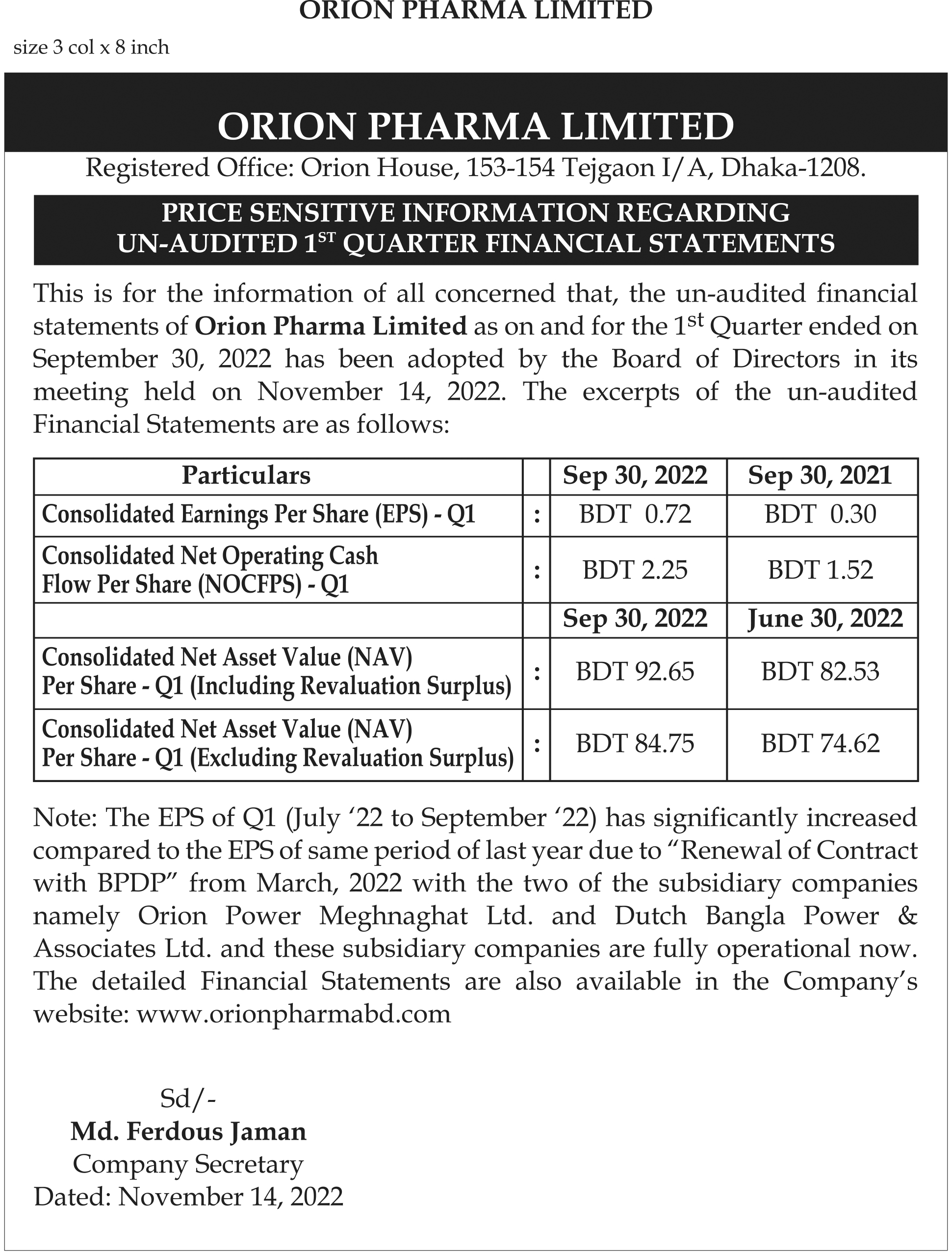 - Anwar Galvanizing, Renata, Orion Pharma now come out of floor restriction