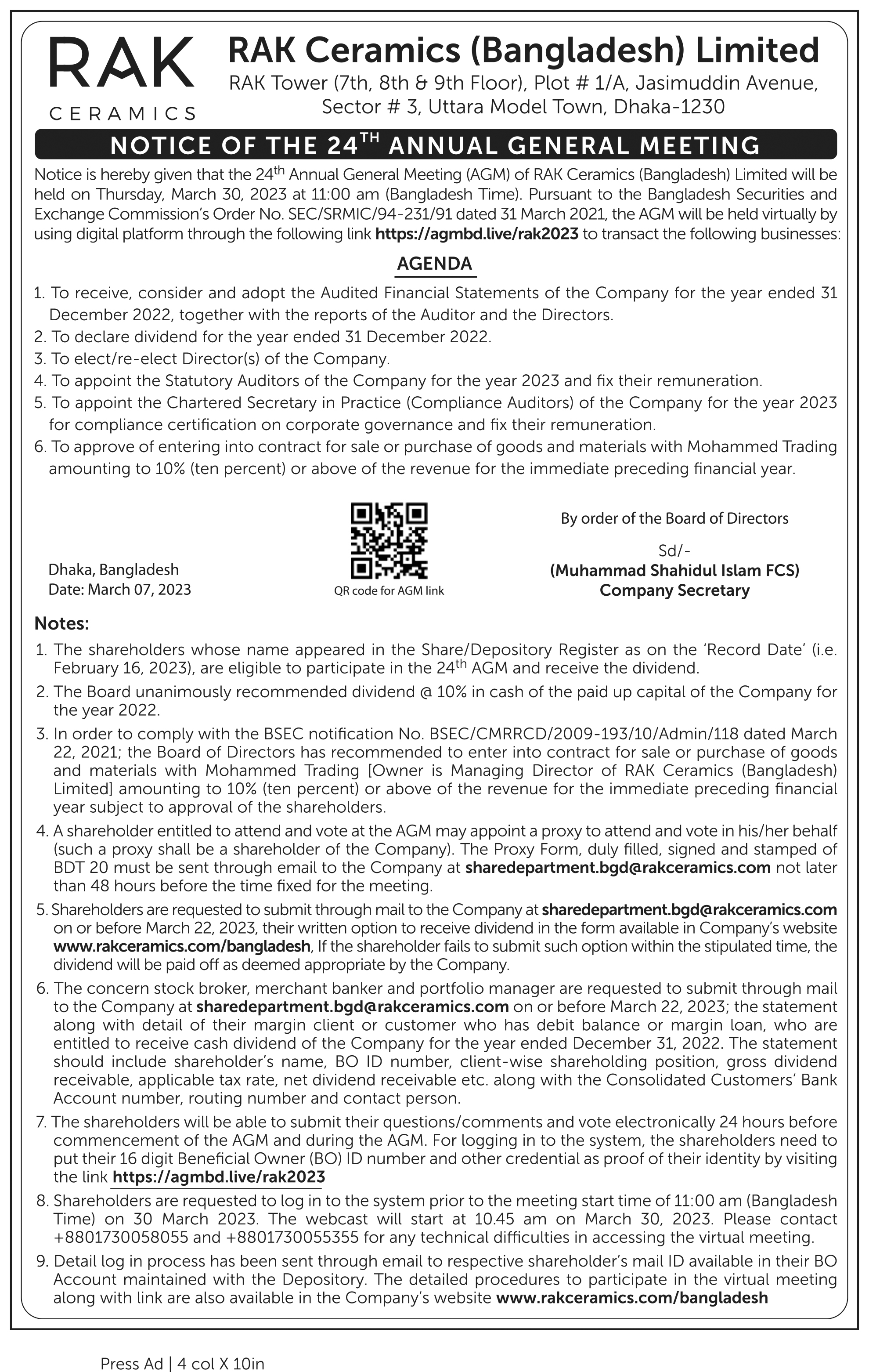 RAK Ceramics: Notice of the 24th Annual General Meeting