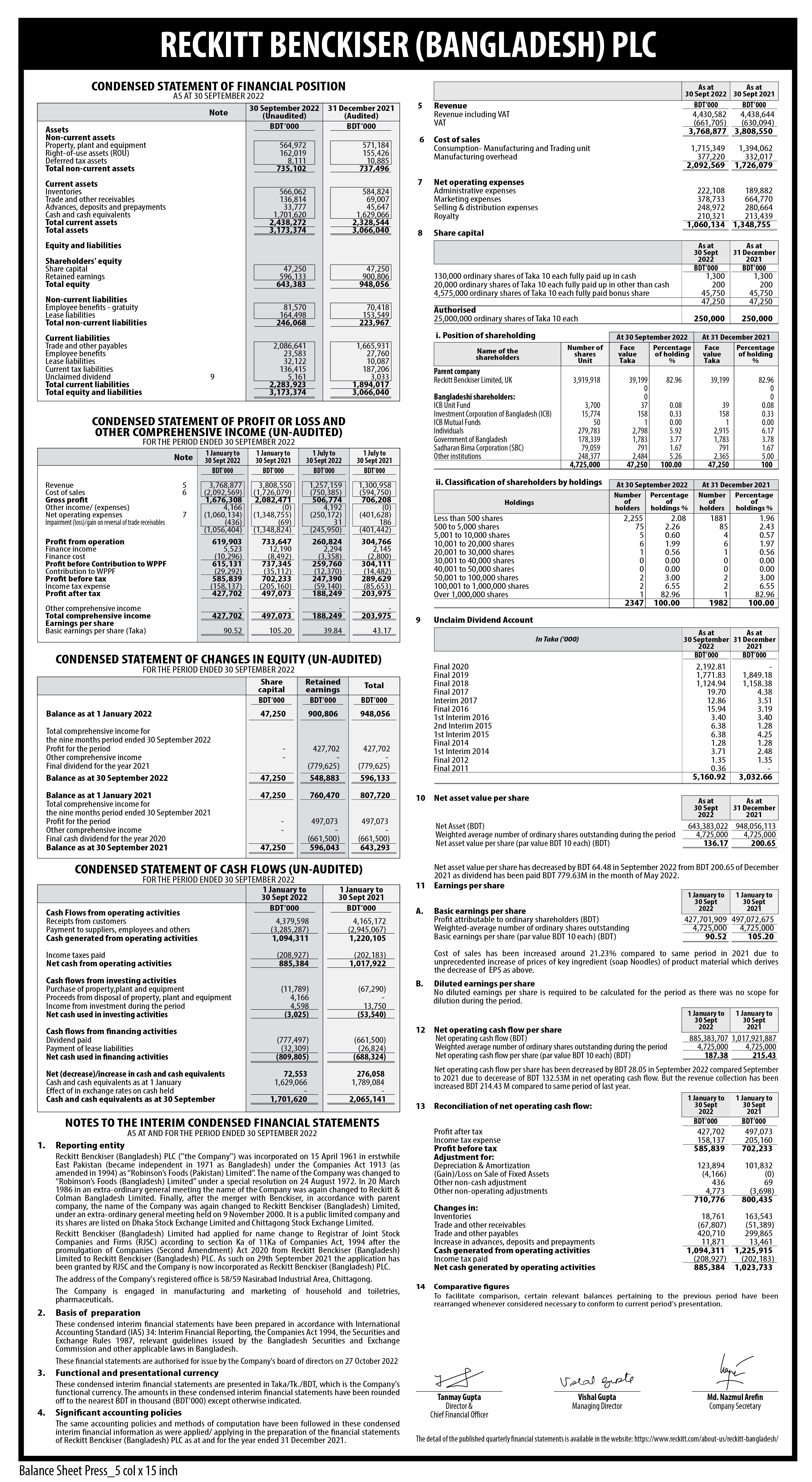 - Interim Condensed Financial Statements | Reckitt Benckiser (Bangladesh) PLC
