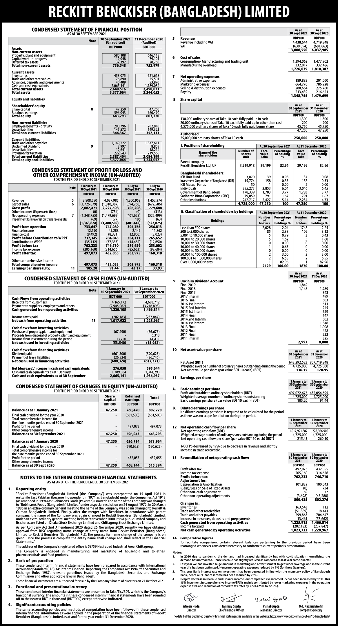 - Interim Condensed Financial Statements | Reckitt Benckiser (Bangladesh) PLC
