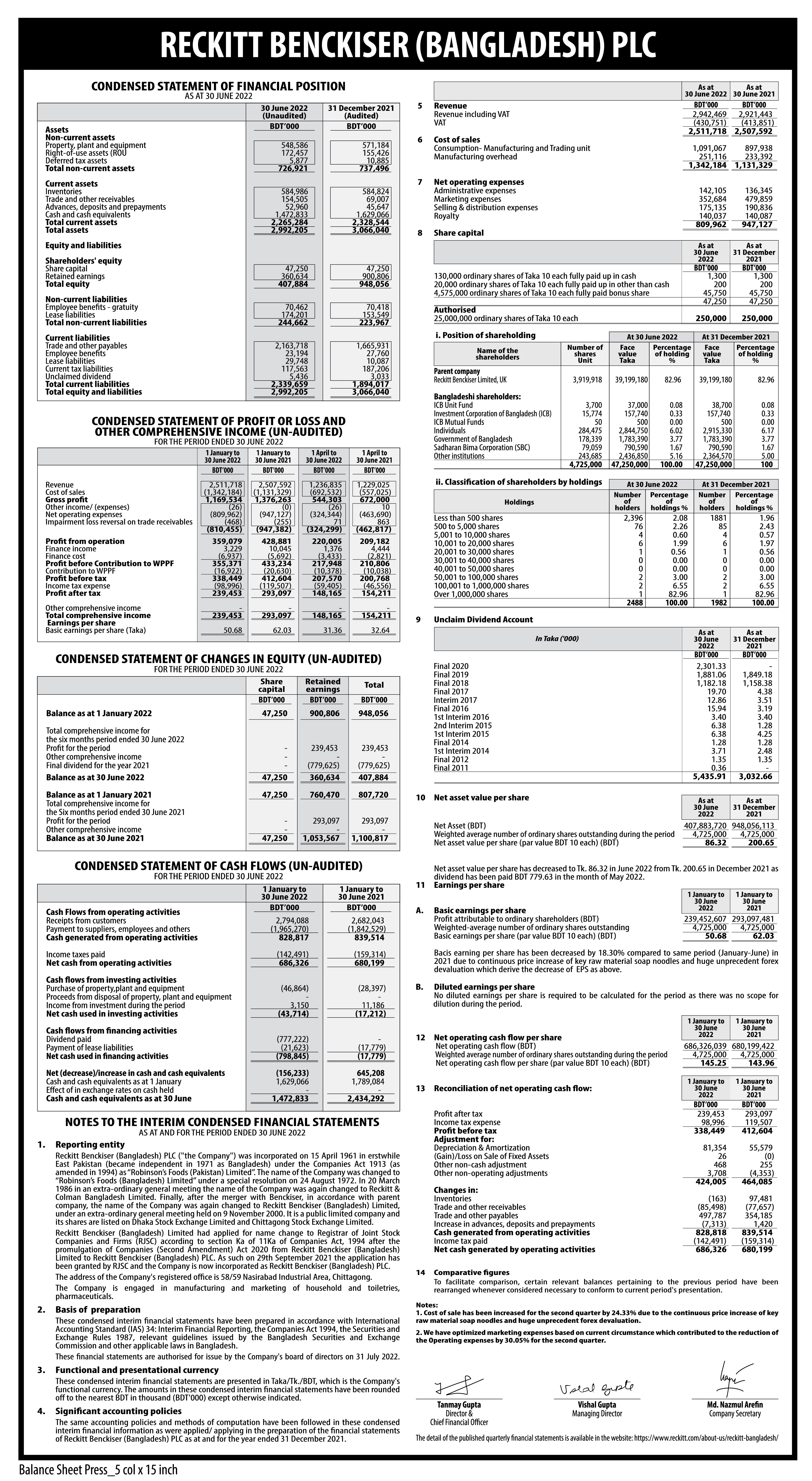- Interim Condensed Financial Statements | Reckitt Benckiser (Bangladesh) PLC