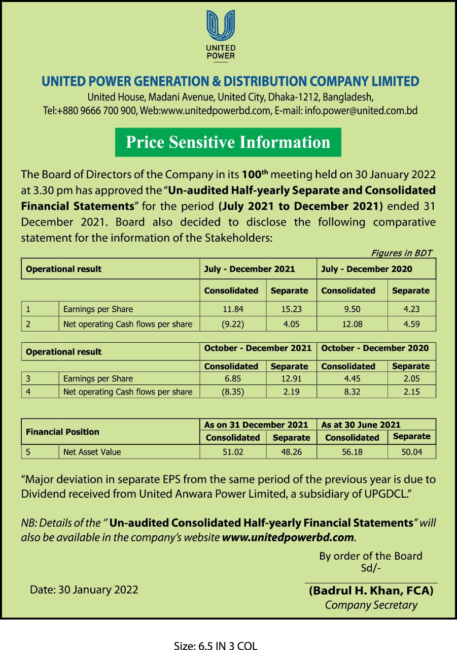 - United Power to get record Tk891 crore interim dividends from 2 subsidiaries