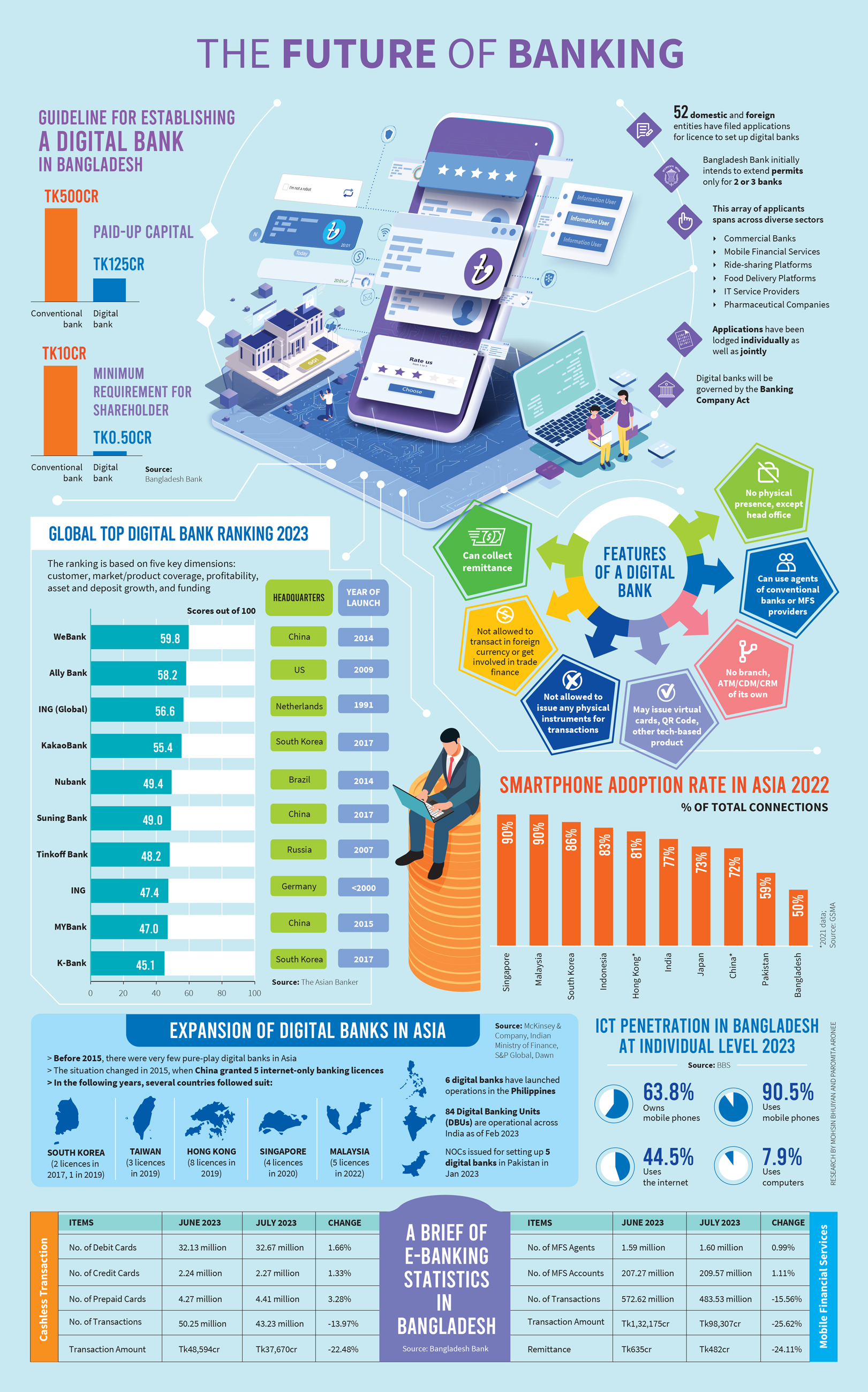 The future of banking Mohsin Bhuiyan & Paromita Aronee 27 September, 2023, 12:15 pm Last modified: 27 September, 2023, 07:54 pm Download/Print Keep updated, follow The Business Standard's Google news channel Digital Banks